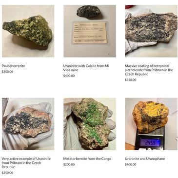 We sell high quality radioactive minerals including Uraninite, Pitchblende, Kasolite, Gummite, Thorite, Autunite, Betafite, Coffinite, Uranophane, Uranothorite, Samarskite, Sklowdowskite, Metazeunerite, Carnotite, Radian Barite, Andersonite, etc. from the world’s most famous mines that have been closed for decades.